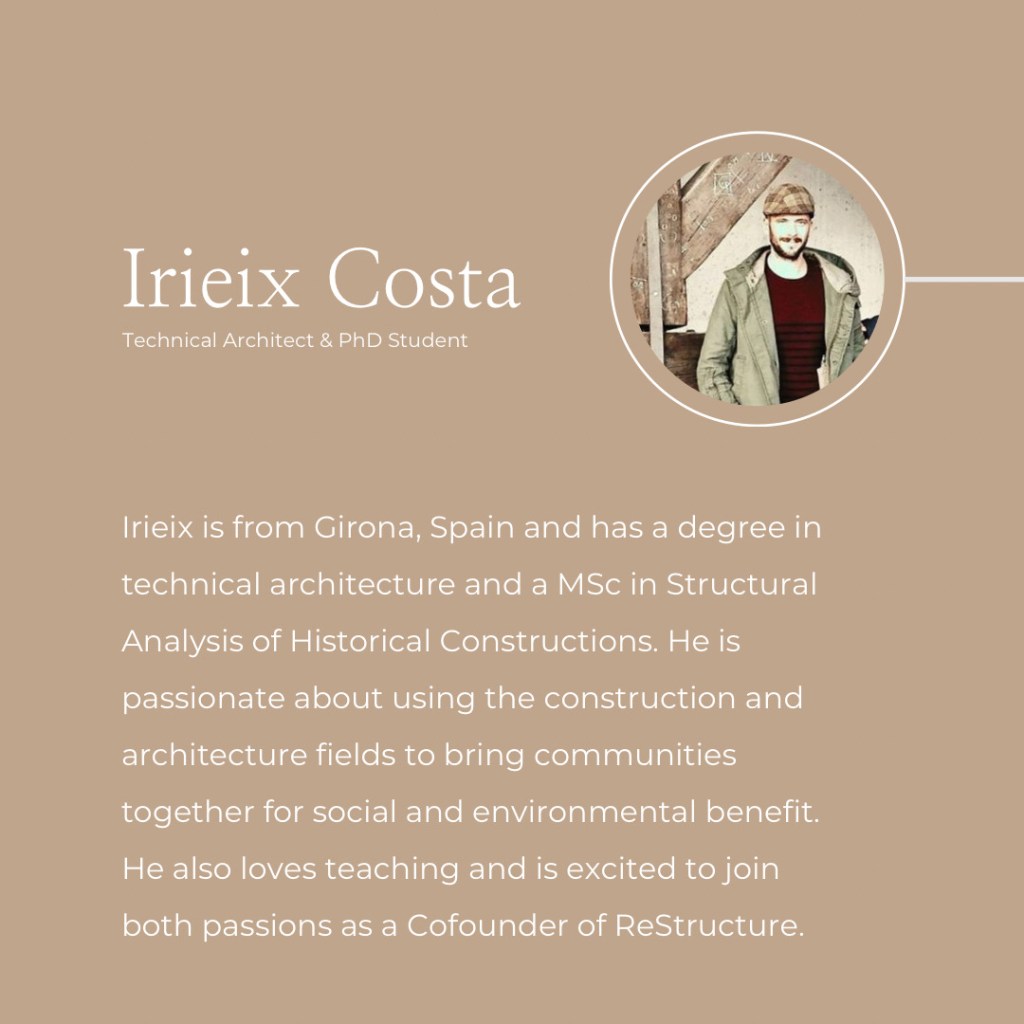 ReStructure Heritage is an association based in Catalonia, Spain that was born from the desire to address the inequality we see in cultural heritage. While famous urban treasures receive millions of visitors and euros annually, heritage in rural areas is deteriorating – with no revenue from visitors or documentation to preserve its history.